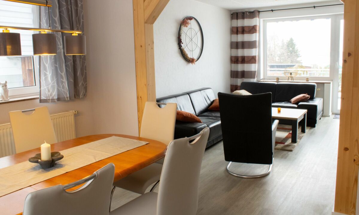 Esszimmer mit Tisch und 6 Stühlen (erweiterbar um einen Kinderstuhl)