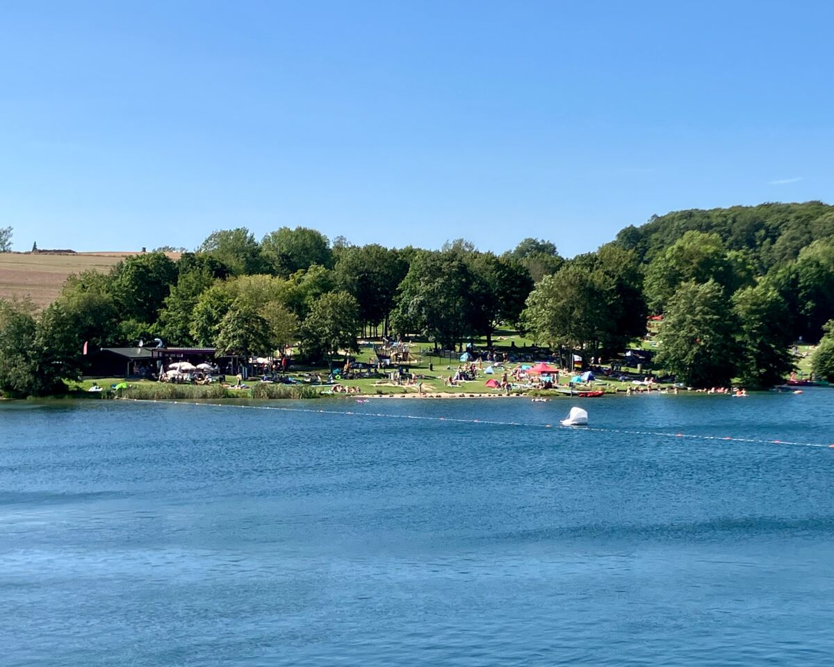 Terrasse mit Tisch und Stühlen sowie ein großzügiger Garten mit Grillmöglichkeit