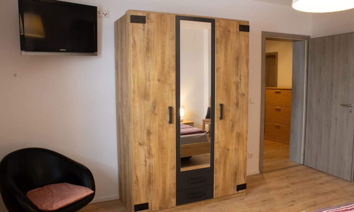 Schlafzimmer 1 mit Doppelbett (180*200cm), Kleiderschrank, Bettwäsche und TV auf der 1.Etage